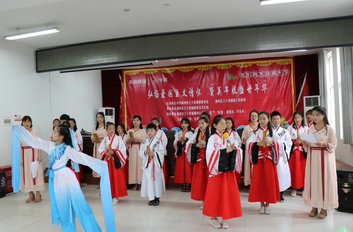 此次活動由三十里鋪鎮人民政府主辦,三十里鋪鎮文化站、團委、文明辦、婦聯、中心學校等單位承辦。節目有文藝匯演、包粽子比賽、掃黑除惡微宣講、精準脫貧微宣講、詩歌朗誦、樂器獨奏等。