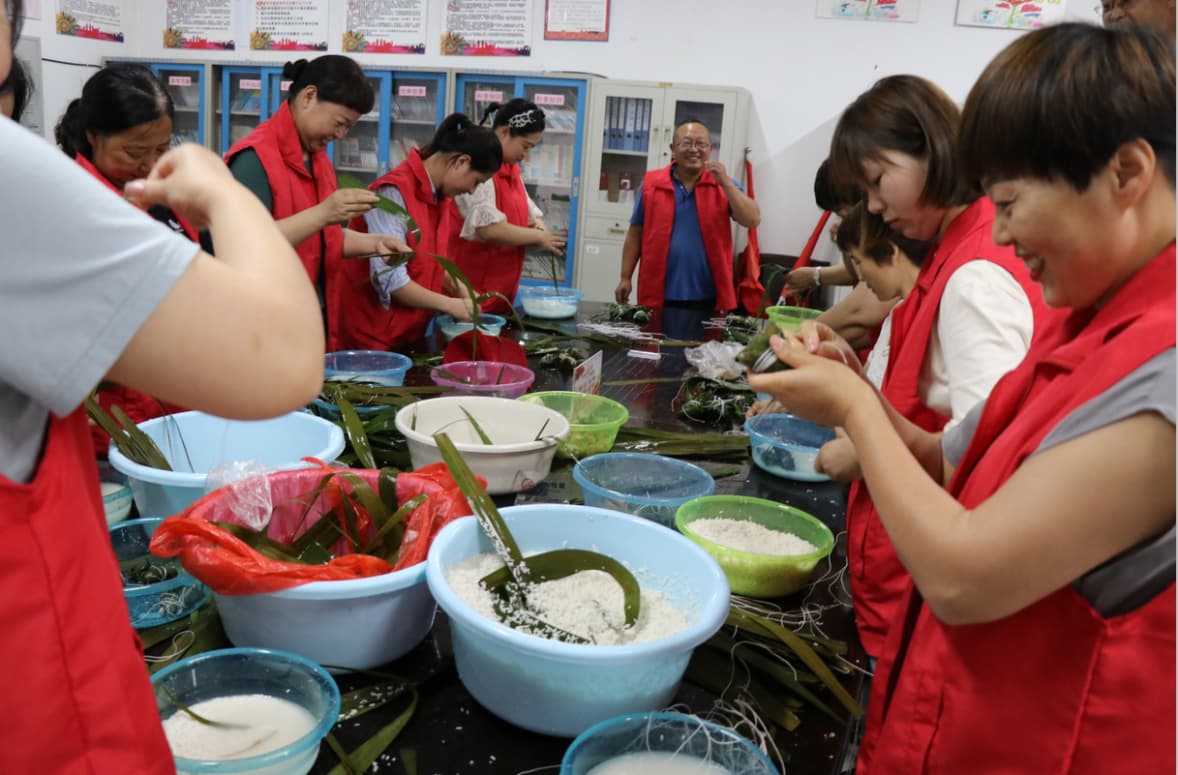 上午9點,活動正式開始,開場是小朋友的架子鼓表演,那激昂的旋律振奮人心,給予人們向前奮進的力量;幼兒園園長楊曉梅一首“我和我的祖國”由衷的喚起大家心底對祖國的熱愛之情;接著是包粽子比賽,大家圍在一起,迅速行動,邊看邊學,逐漸從生到熟,認真將糯米、紅棗在粽葉中填滿扎牢,短短半個小時的時間,就包出了200多個形態各異的粽子。包好的粽子以不露餡、包扎嚴實、形狀規則計算成績,通過激烈角逐,評出了一等獎1名、二等獎2名、三等獎3名。宣講員以快板形式進行掃黑除惡微宣講、精準脫貧微宣講,大家都認真的邊聽邊記,過節的同時時刻不忘自己肩負的責任和使命。詩歌朗誦(屈原名篇“橘頌”),守護文化根脈,凝聚民族精神,抒發愛國情懷。最后在美妙的樂器獨奏聲中結束了活動。