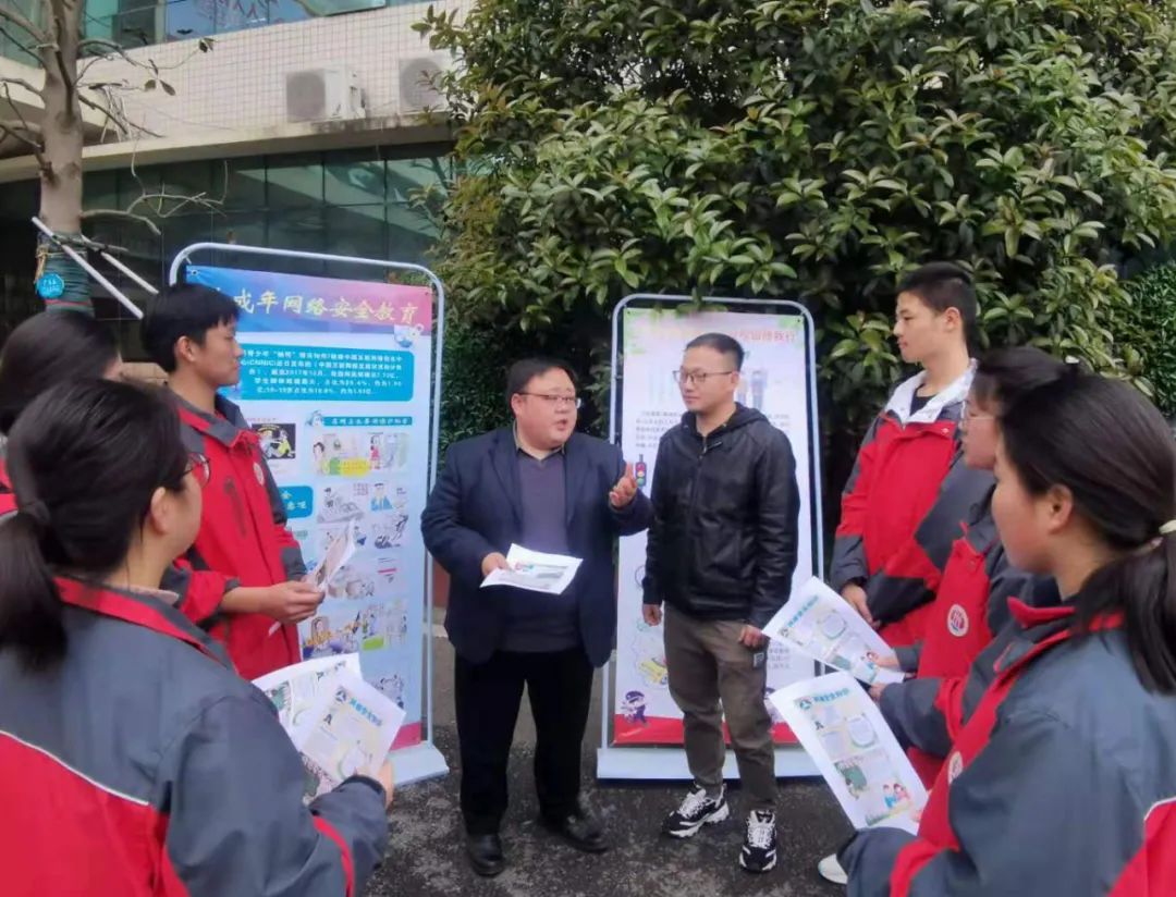 宣講結束后,網信辦工作人員向同學們發放了網絡安全知識宣傳單,還利用課間時間和部分同學進行了互動交流,針對同學們提出的問題給予細致解答。