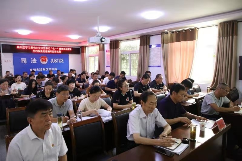 7月26日,潁州區“汲取榜樣力量 做好時代答卷”學習貫徹習近平總書記“七一”重要講話精神巡回報告團走進潁州區司法局,局全體干警參加報告會。