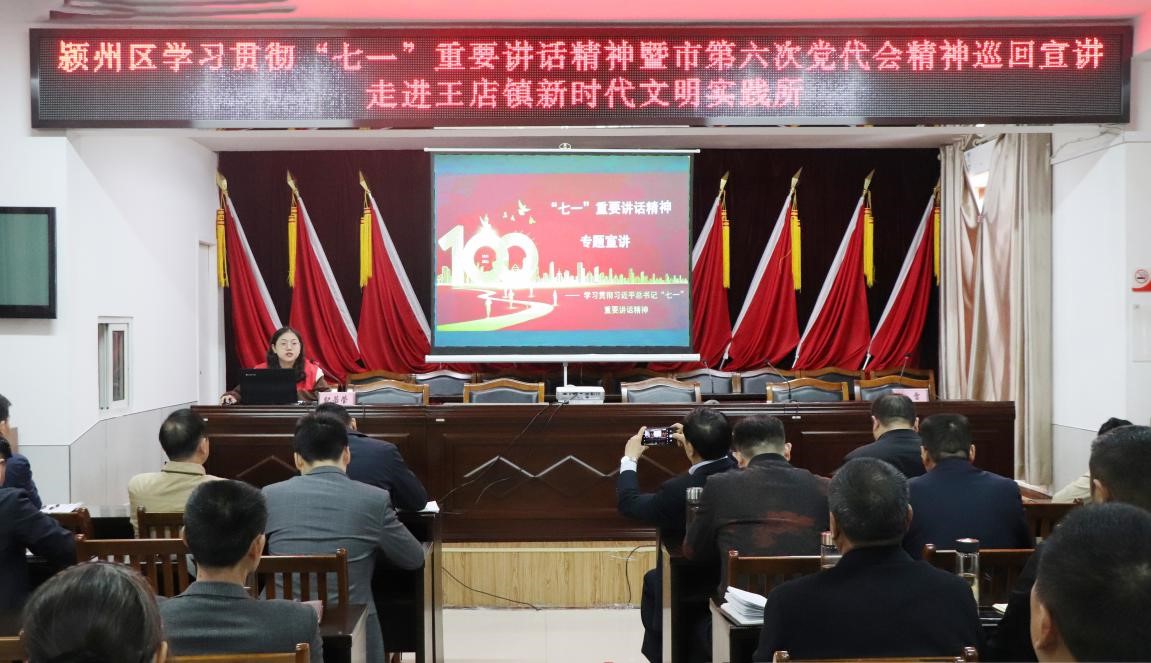 10月11日上午,潁州區黨史學習教育“理論+”巡回宣講團走進王店鎮新時代文明實踐站,王店鎮黨員干部、群眾代表共100余人參加學習。