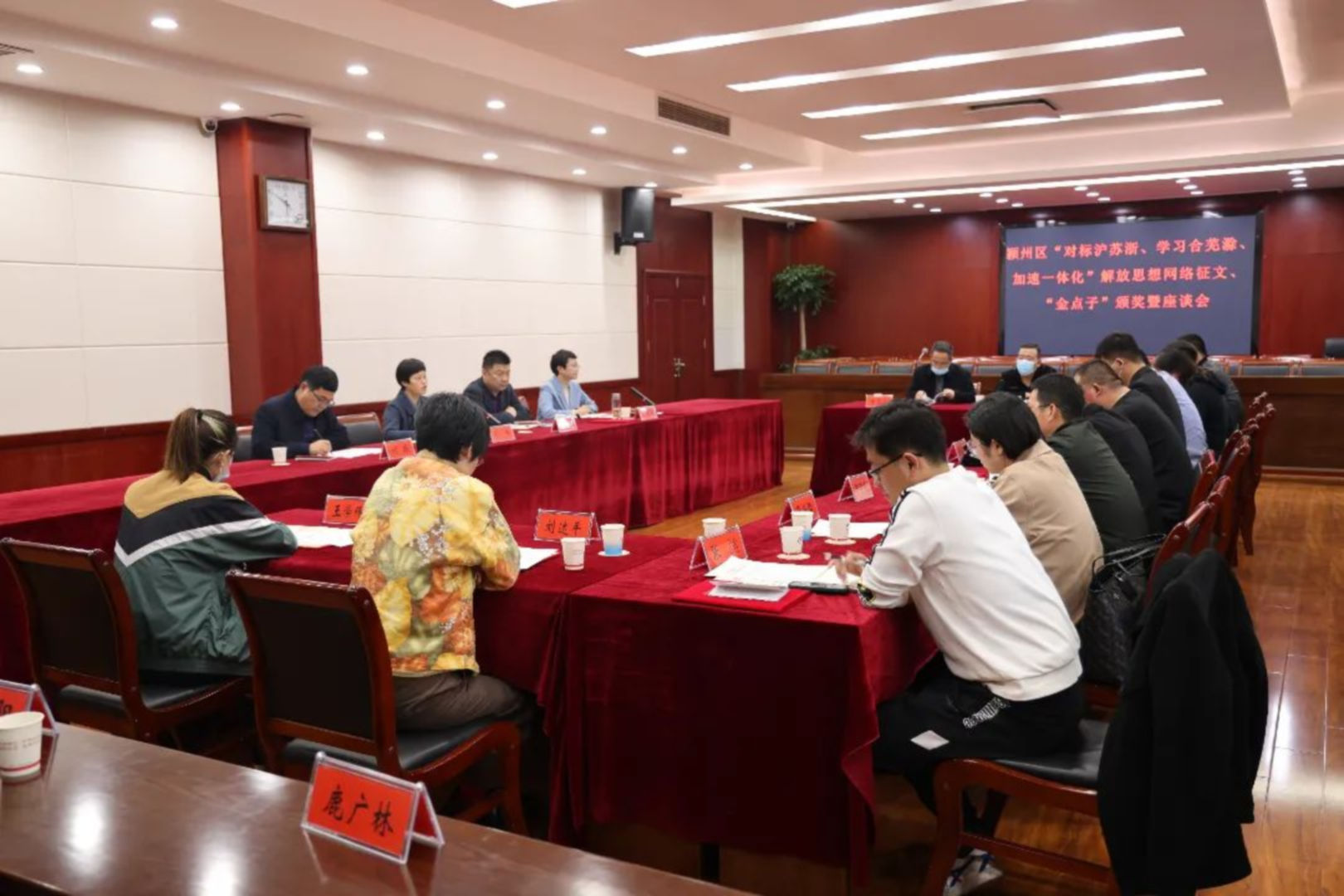 3月11日下午,潁州區召開“對標滬蘇浙、學習合蕪滁、加速一體化”解放思想網絡征文和“金點子”頒獎暨座談會。區委常委、宣傳部長梁峰出席會議。區委宣傳部班子成員、5名專家評委和16名獲獎人員代表參加會議。