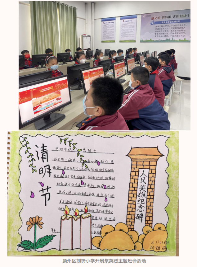春風送暖,又逢清明。在這緬懷追思的傳統節日里,為傳承弘揚英烈事跡和精神,引領崇尚、緬懷、學習、捍衛英烈的風尚,潁州區康佳希望小學、潁州區劉锜小學的學生們紛紛通過主題班會、手抄報、黑板報等方式追思英烈,表達對英雄的崇敬之情。
