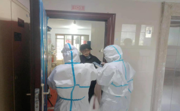 4月5日是核酸檢測(cè)的第一天,排隊(duì)檢測(cè)的居民特別多,“我年齡很大,腿腳不方便,我的核酸檢測(cè)該怎么辦?”“您別急,我們現(xiàn)在上門來為您做核酸檢測(cè)!”丁麗和“大白”醫(yī)護(hù)人員迎著炎熱在小區(qū)穿梭,登門為14位行動(dòng)不便的居民做檢測(cè)。忙完登門檢測(cè),丁麗又拿著擴(kuò)音喇叭和小伙伴一起“掃樓”,提醒居民應(yīng)檢盡檢,可怕的病毒和酷熱的天氣根本難不住凝聚的人心和無所畏懼的基層干部。