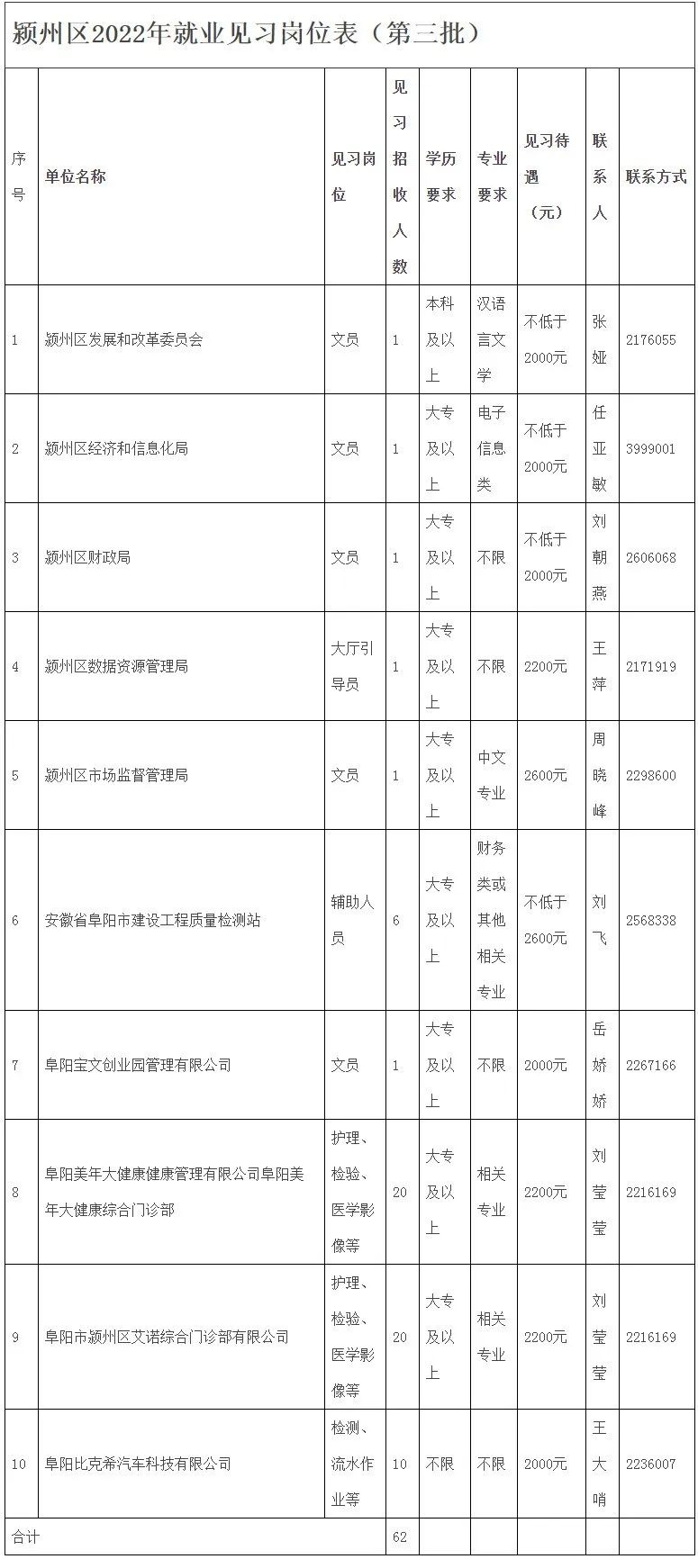 附件: 潁州區2022年就業見習崗位表(第三批)