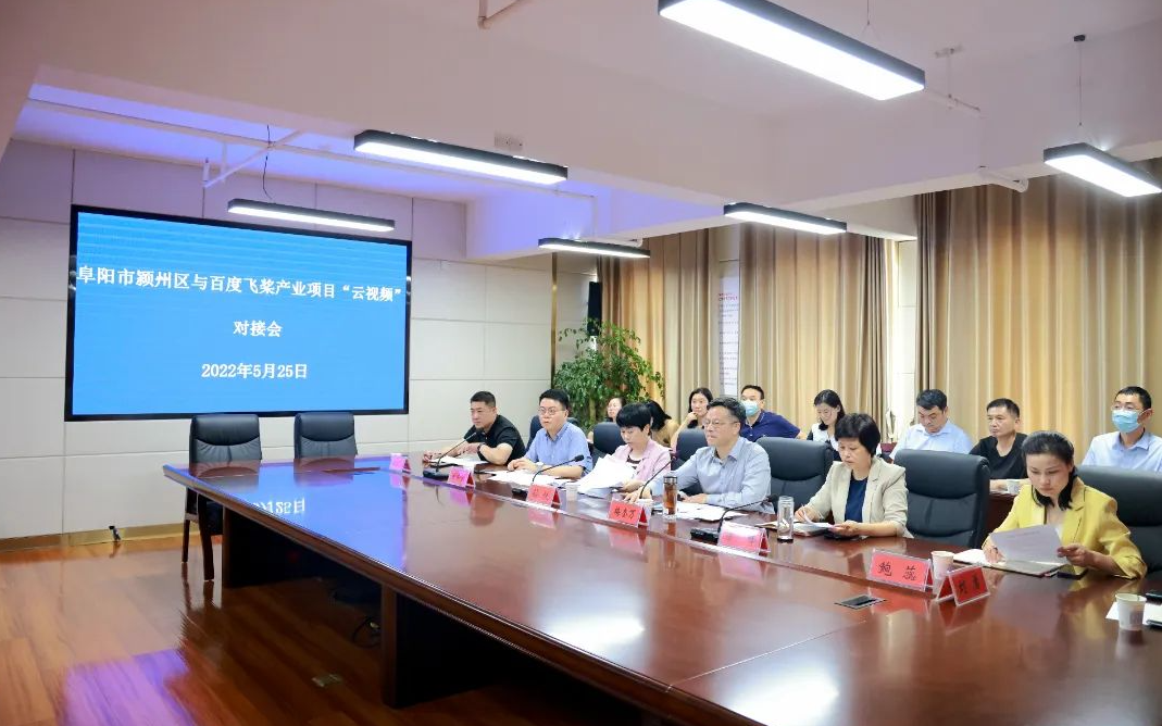 5月25日下午,阜陽市潁州區與百度飛槳產業項目“云視頻”對接會召開。阜陽市委宣傳部副部長梅奎萬、百度智能云行業銷售總監馬達主持召開百度飛槳產業項目“云視頻”對接會。阜陽市文化旅游體育局副局長孫悅,潁州區委常委、宣傳部長梁峰,潁州區政府副區長徐志弢出席對接會。市委宣傳部、市文旅局、區委宣傳部、區文旅局、區經信局、區數據局、區科技局、區招商中心等相關單位負責人及百度公司、智侒信公司相關代表參加視頻會議。