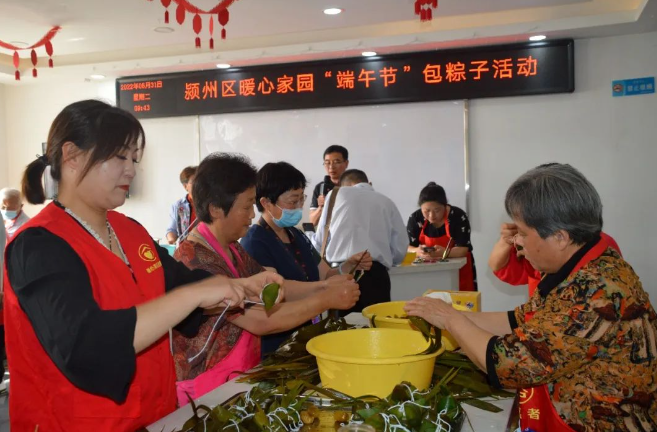 阿姨們忙著包粽子,大叔大伯們有的鋪開(kāi)象棋對(duì)壘,有的走進(jìn)健身室鍛煉,愛(ài)唱歌的大叔打開(kāi)音響,放聲歌唱,一邊展示歌喉,一邊為包粽子的阿姨鼓勁加油,暖心家園里頓時(shí)熱鬧異常,掌聲陣陣,歡歌笑語(yǔ)不絕于耳。粽子煮好后,志愿者把香噴噴的粽子端到餐桌,讓老人們一起品嘗勞動(dòng)成果,品味幸福生活。