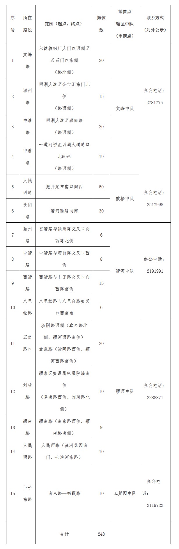 為給瓜農銷售西瓜、城區居民購買西瓜提供便利,做好城市管理服務的“最后一公里”,積極引導瓜農規范經營,加強對臨時西瓜銷售攤點秩序的監管,結合疫情防控現狀,根據區城管執法局上報的臨時西瓜銷售攤點,依據《阜陽市城市市容和環境衛生管理條例》第二十三條,同意在潁州城區設置臨時西瓜銷售點15處(見附件),現就有關事項通知如下: