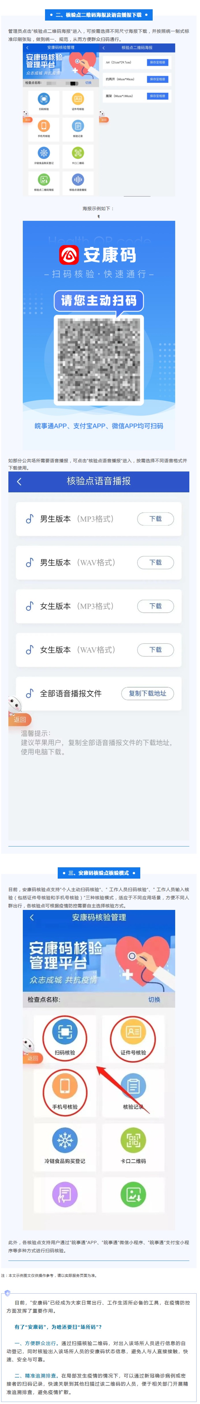 二、嚴格查驗“場所碼”。堅持“逢進必掃、逢掃必查、逢異必報”。各類場所及單位要指定專人值守,嚴格核驗通行人員健康狀態。凡進入場所人員必須掃描“場所碼”。發現“場所碼異常”人員,嚴禁其進入場所,立即報告屬地疫情防控指揮部。
