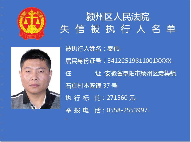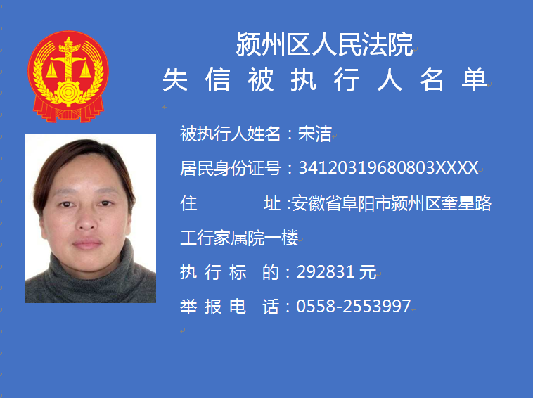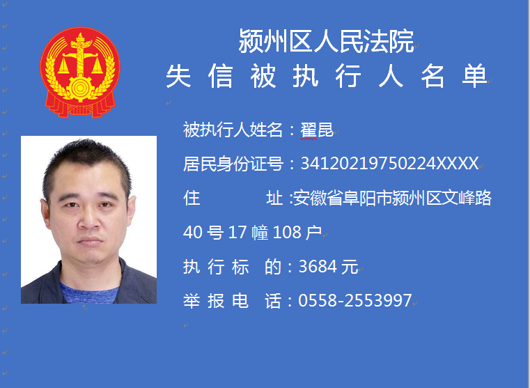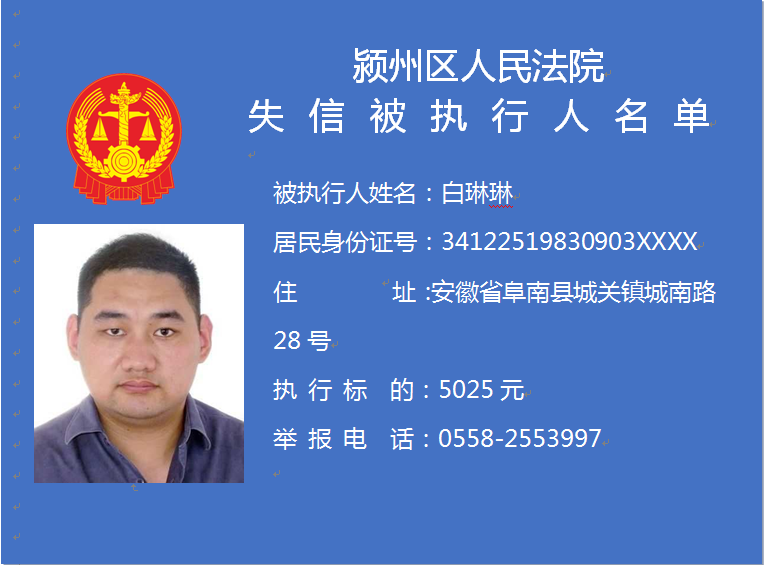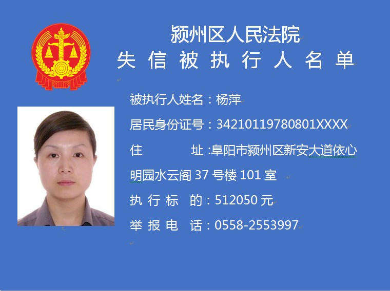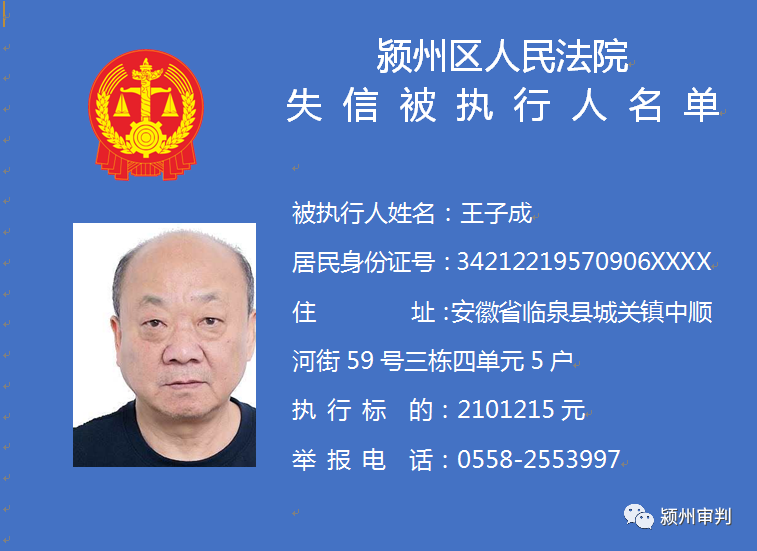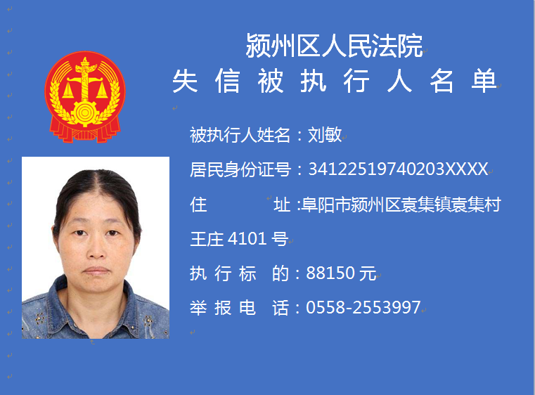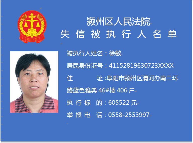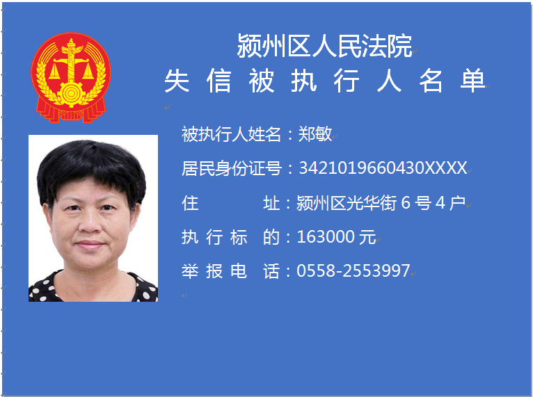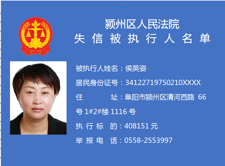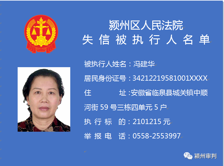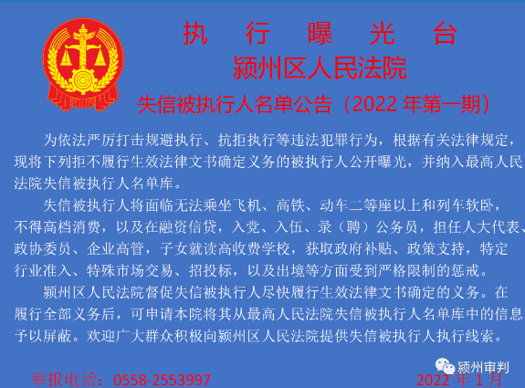 潁州區(qū)人民法院失信被執(zhí)行人信息曝光臺