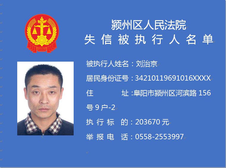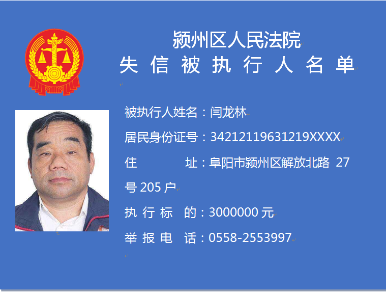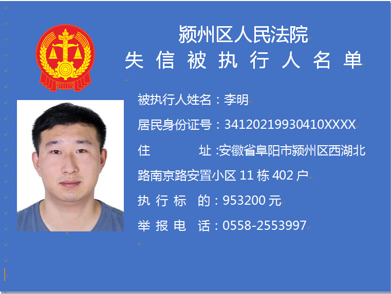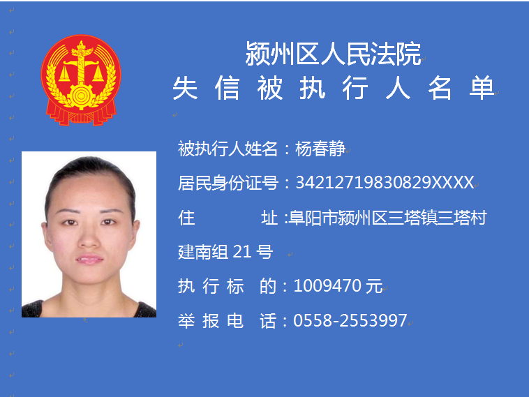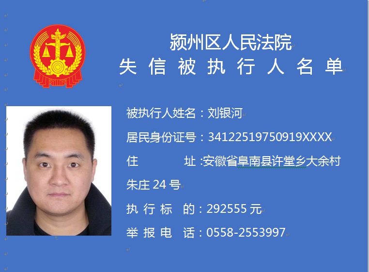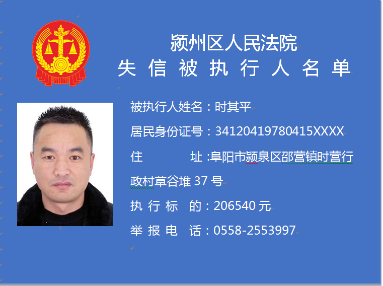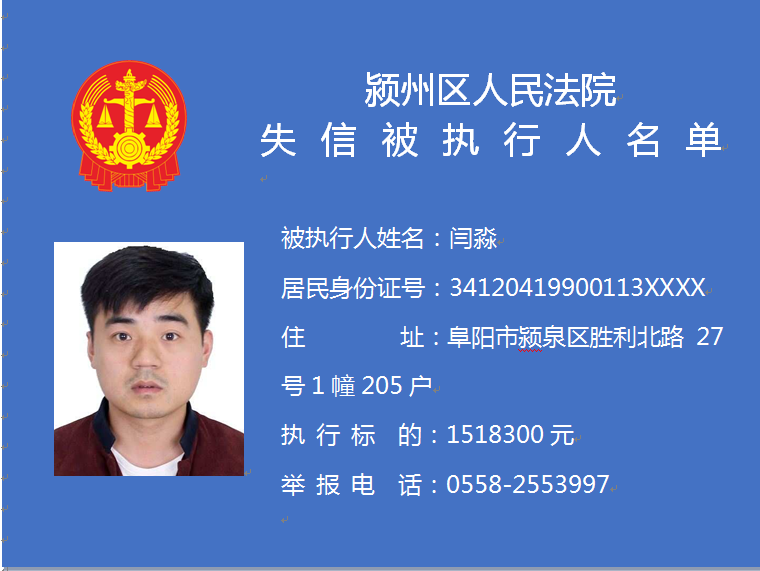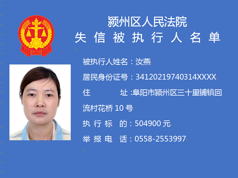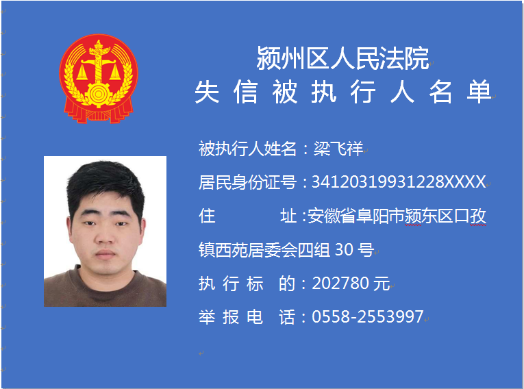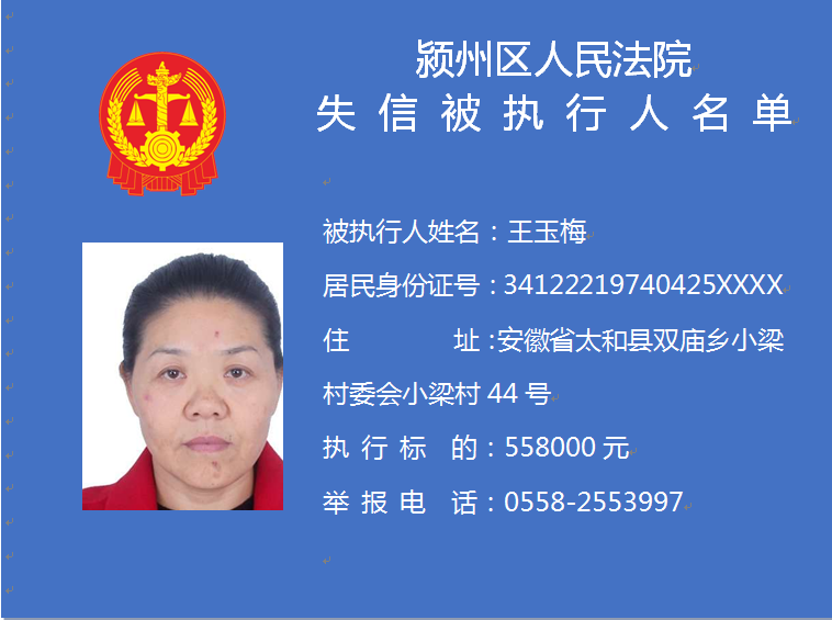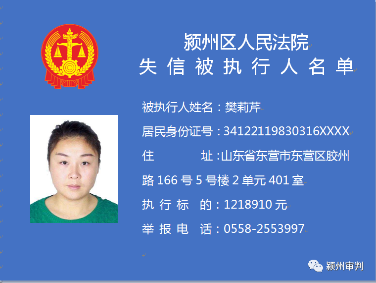 潁州區(qū)人民法院失信被執(zhí)行人信息曝光臺