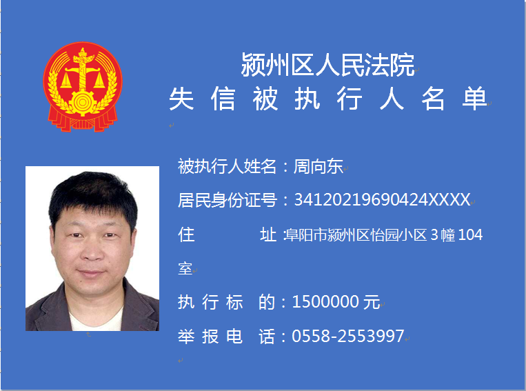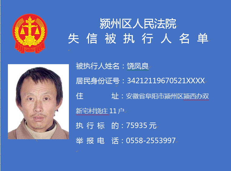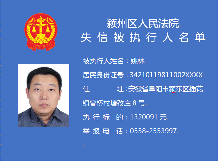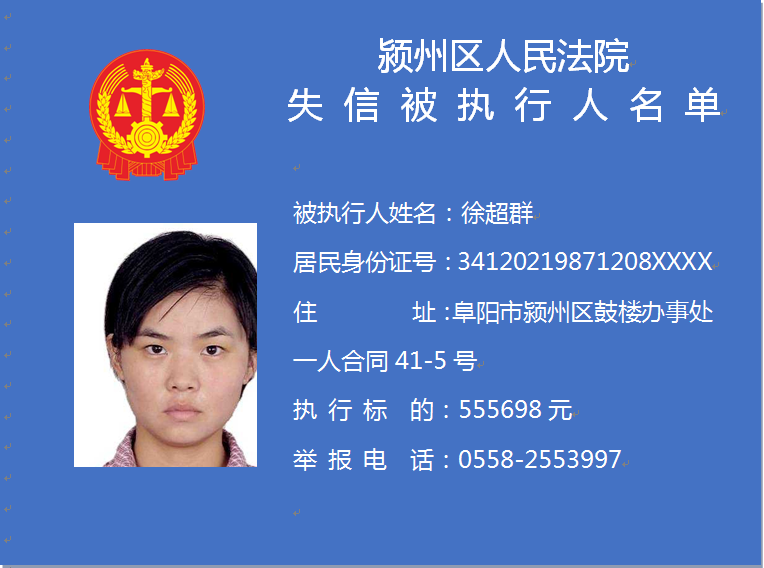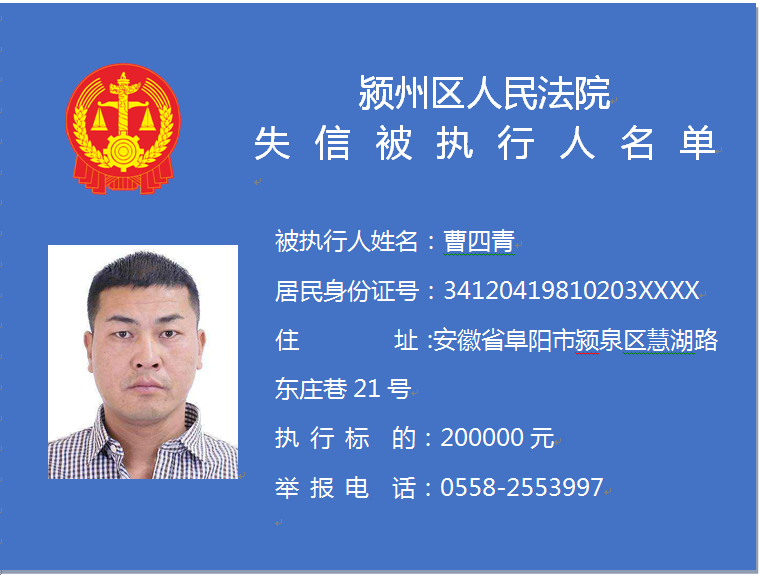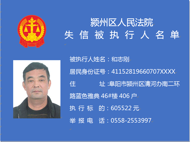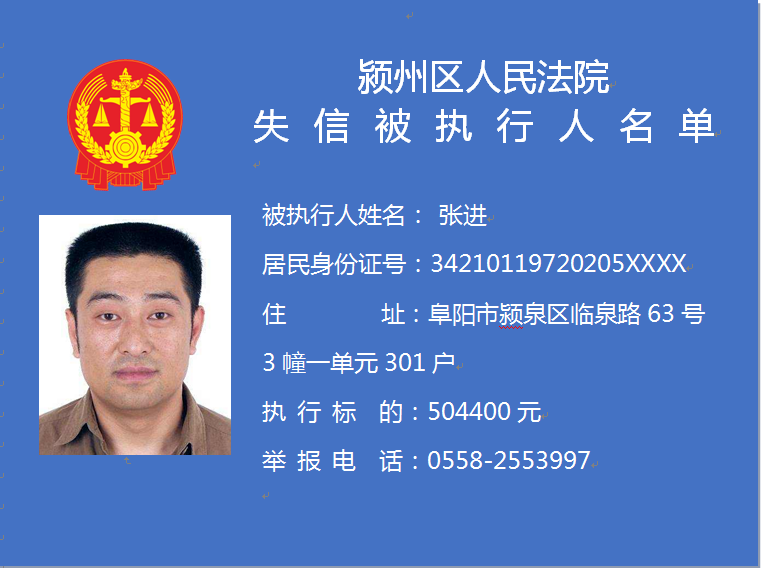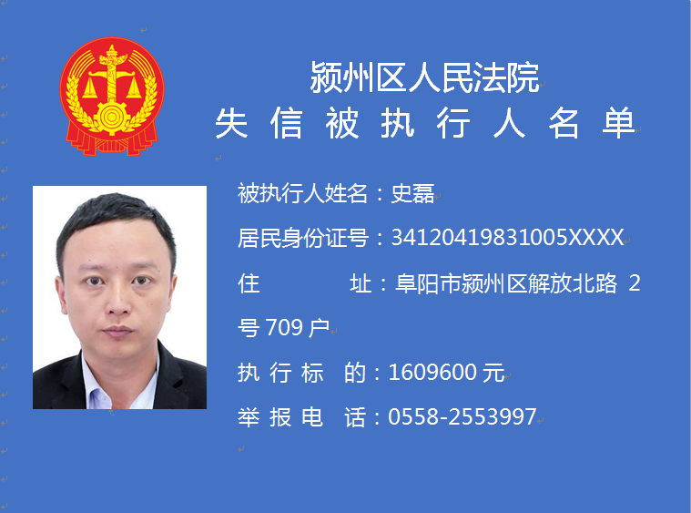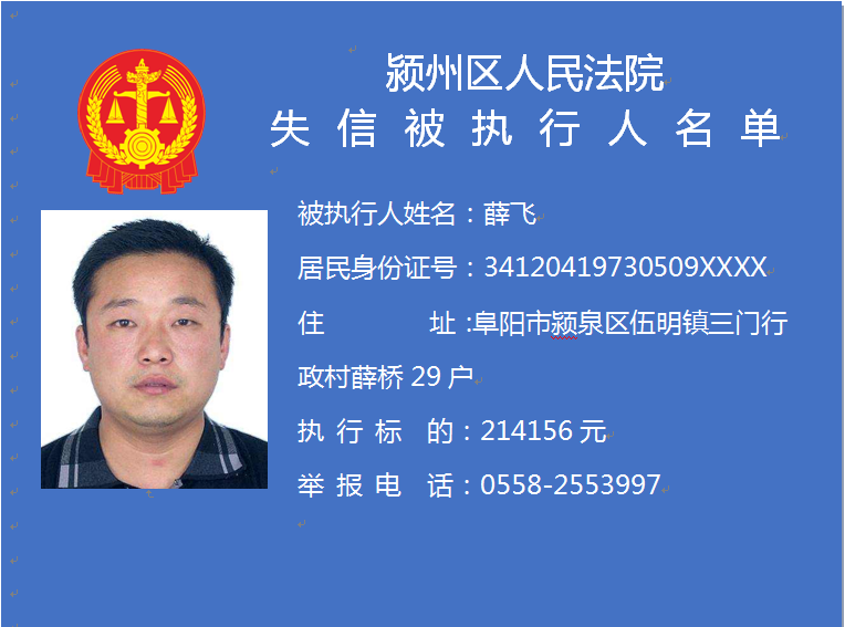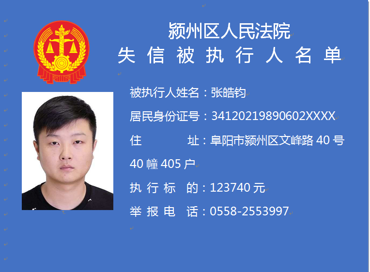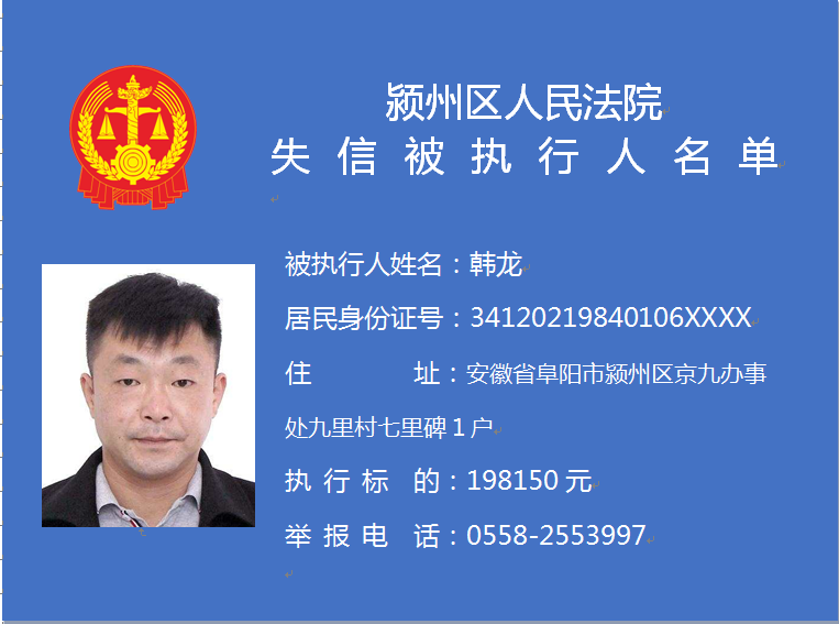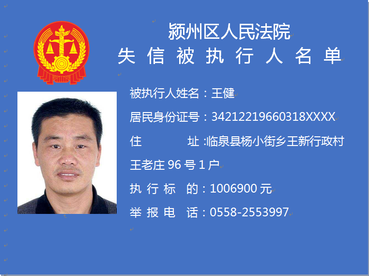 潁州區(qū)人民法院失信被執(zhí)行人信息曝光臺