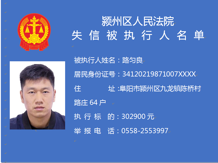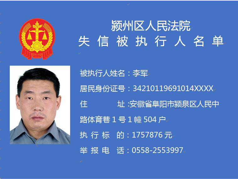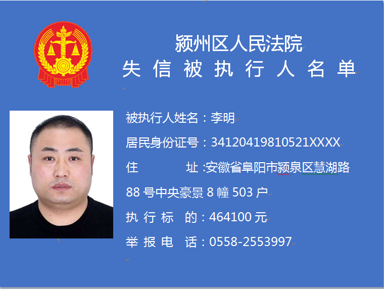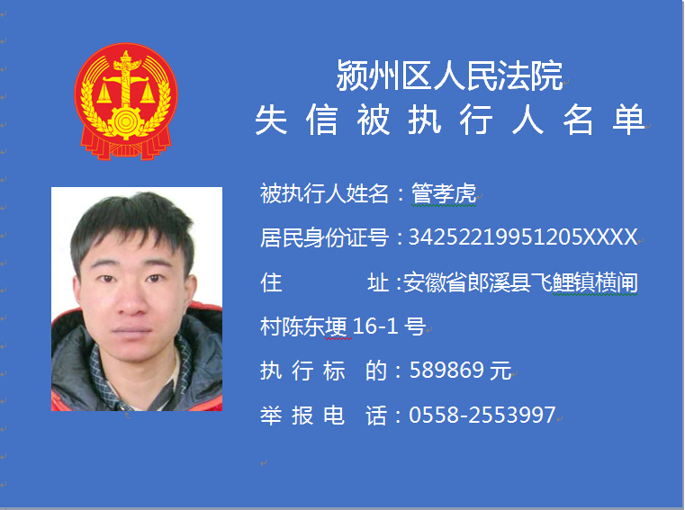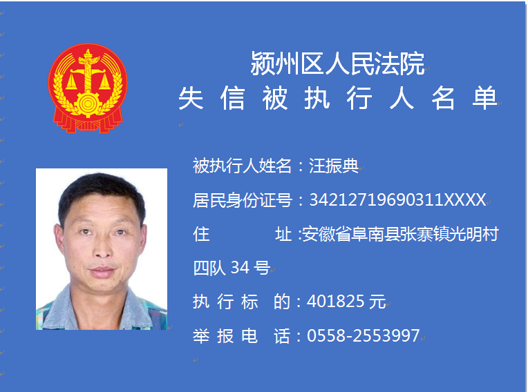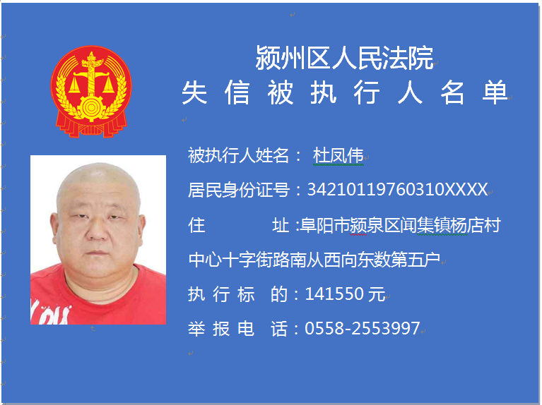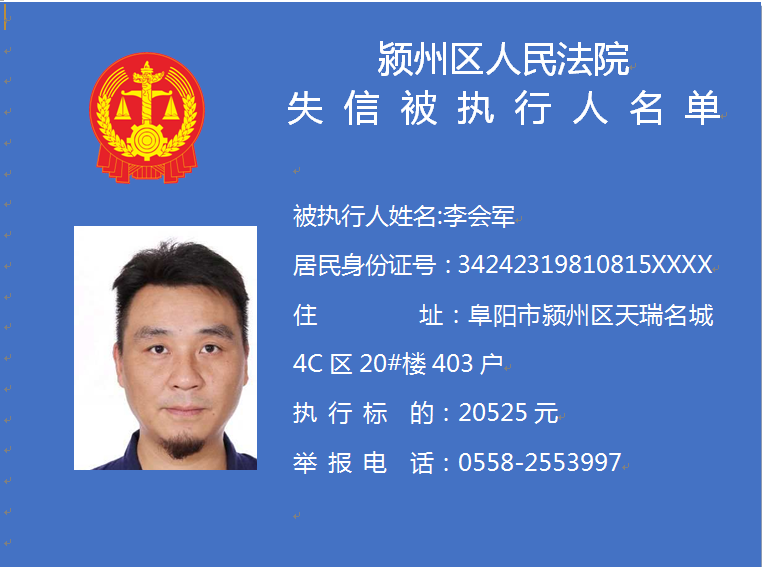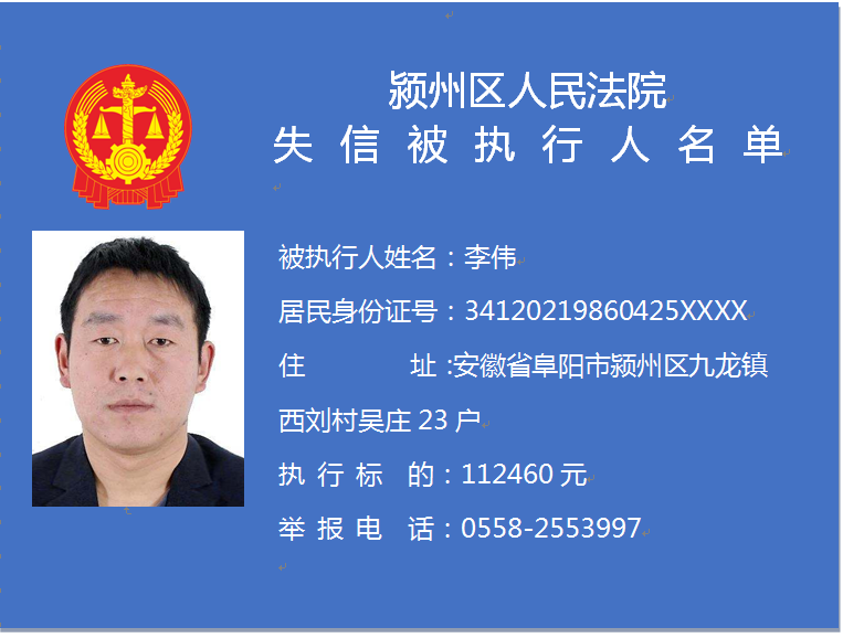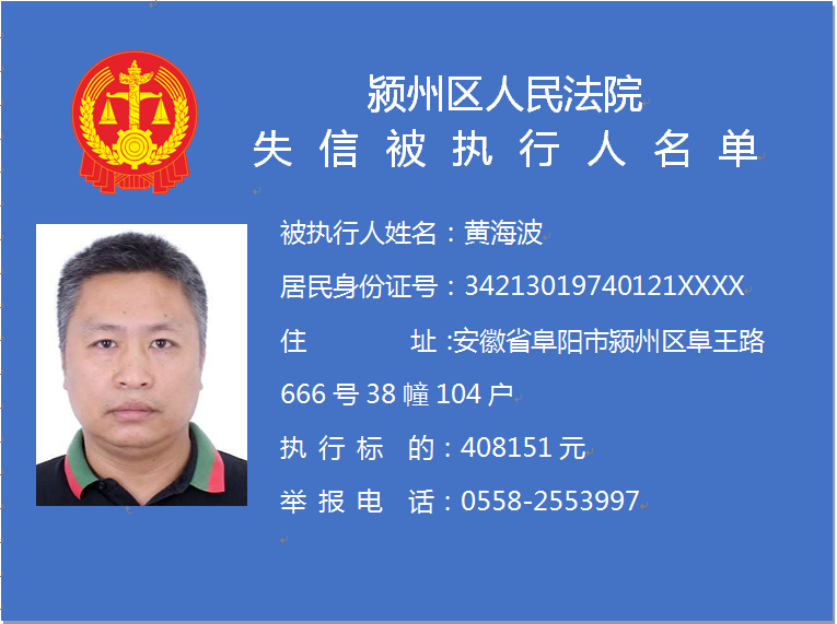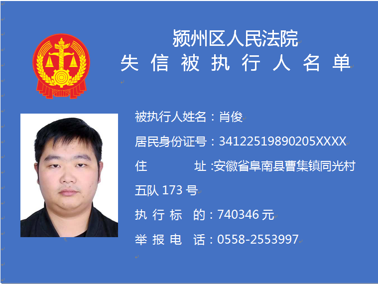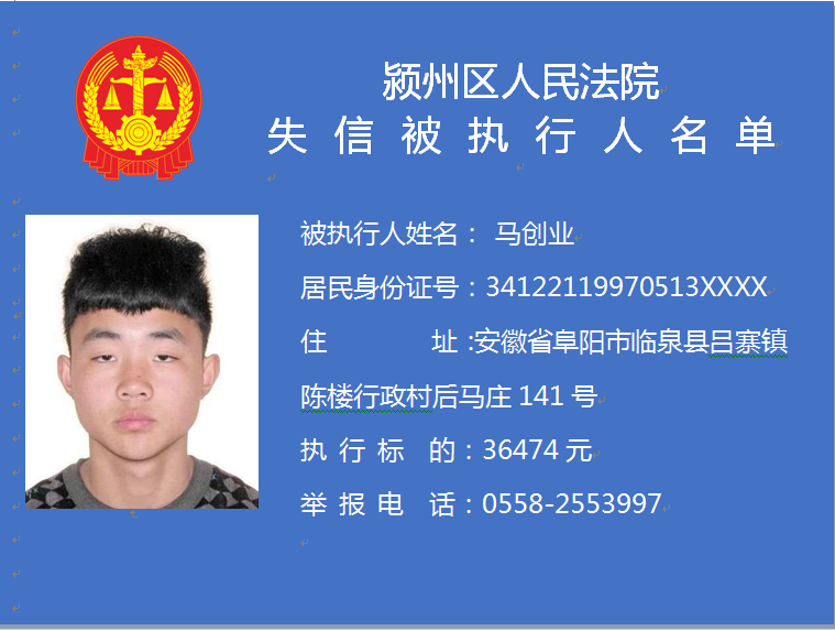潁州區(qū)人民法院失信被執(zhí)行人信息曝光臺