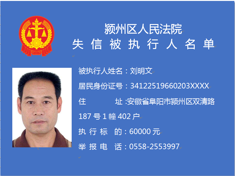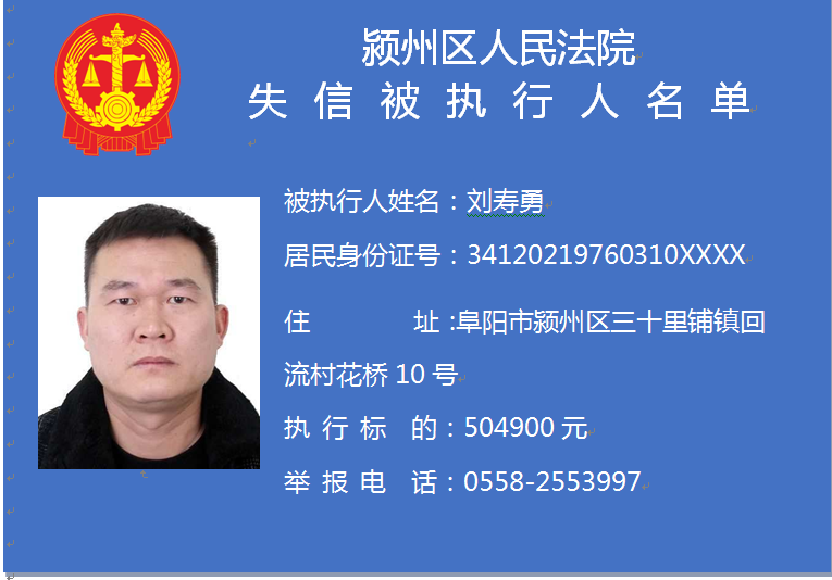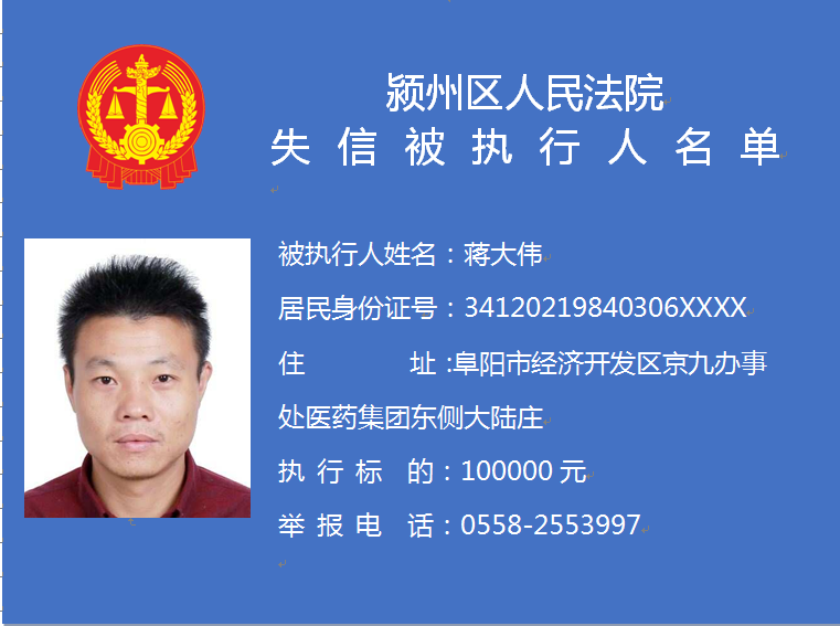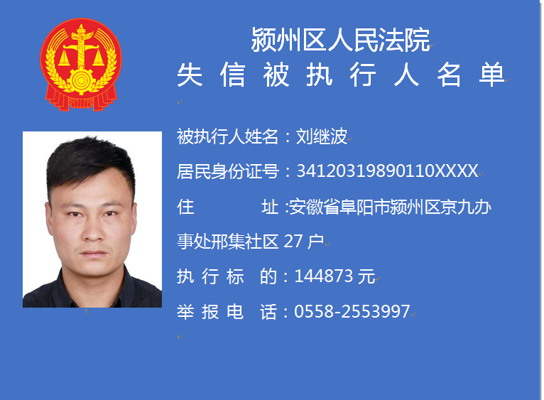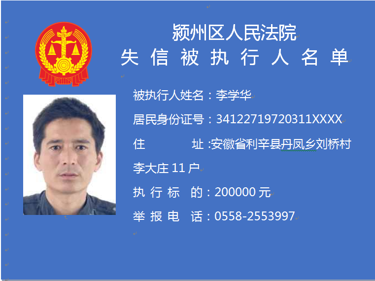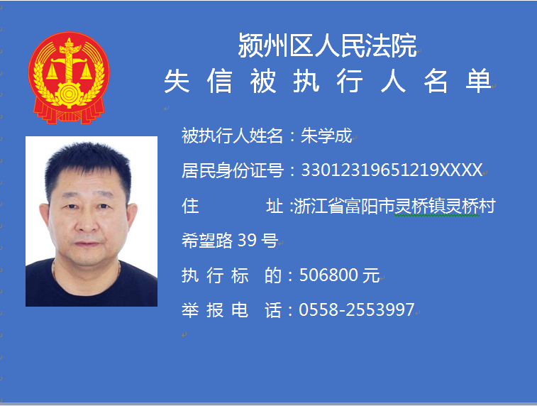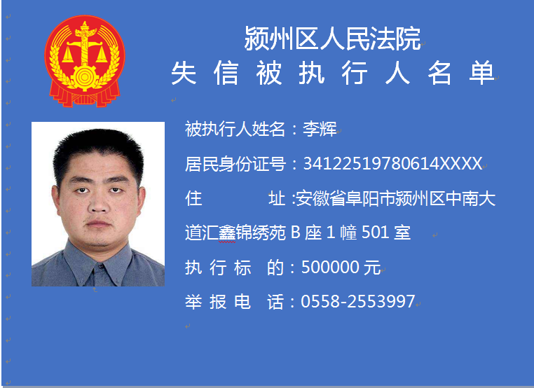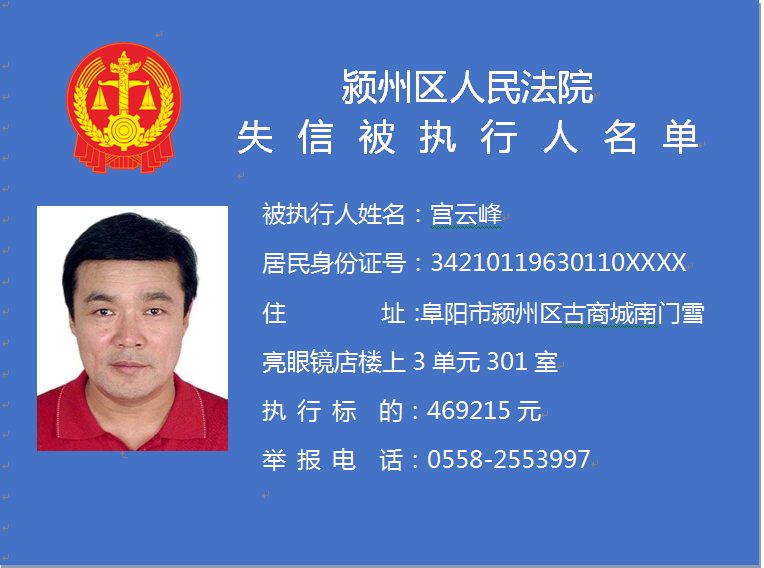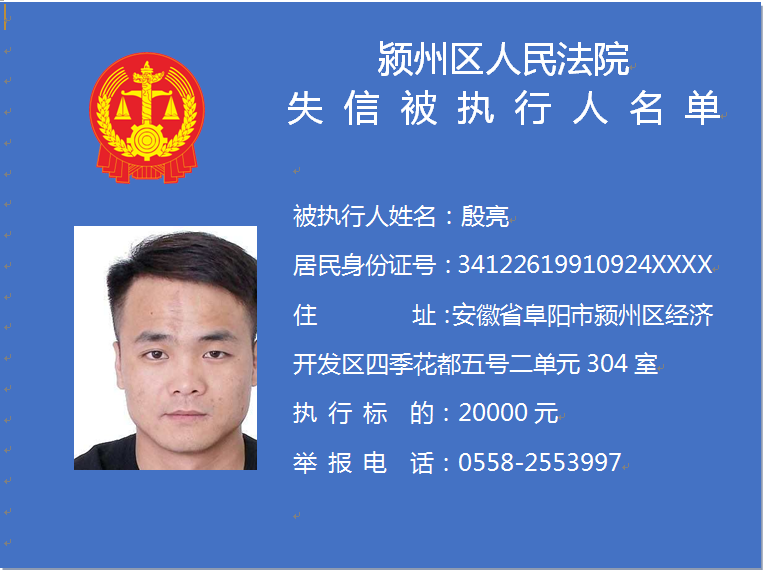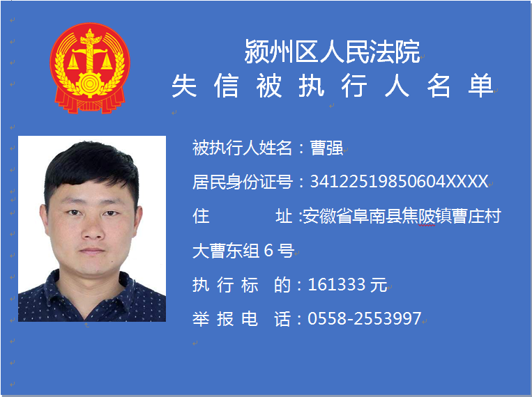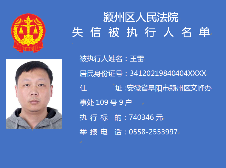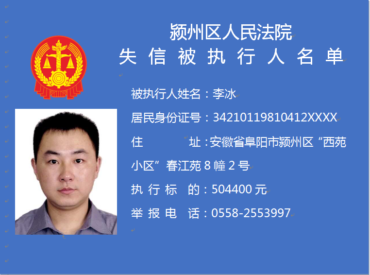 潁州區(qū)人民法院失信被執(zhí)行人信息曝光臺