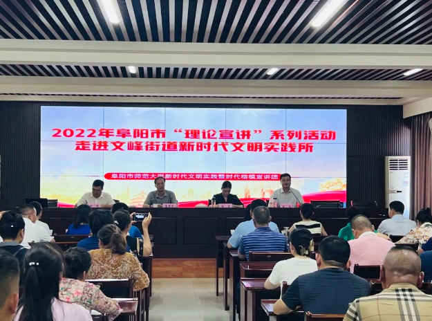 7月12日,阜陽師范大學新時代文明實踐暨時代楷模宣講團走進文峰街道,開展首場“理論宣講”系列活動。阜陽市文明辦副主任張燕、潁州區委宣傳部副部長、文明辦主任劉振出席,會議由文峰街道黨工委書記曾亮主持,街道黨政班子成員、16個社區書記、副書記、宣傳委員和新時代文明實踐站負責人參加。