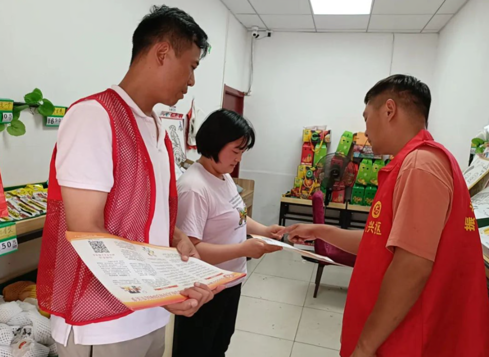 潁西街道振興社區(qū)網(wǎng)格員入商戶進(jìn)行政策宣傳