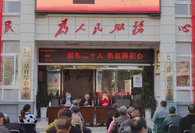 為進一步學習宣傳貫徹黨的二十大精神,將黨的二十大精神學深悟透、落到實處,10月31日上午,潁州區三合鎮三星村在村部舉行黨的二十大精神宣講和無償獻血活動。宣講會邀請了潁州區學習宣傳貫徹黨的二十大宣講團成員、“全國理論宣講先進個人”李坤池、三星村駐村第一書記寧建武主講。三星村黨員、村民組長、村民代表、國網阜陽供電公司志愿者等共200余人參加了宣講。