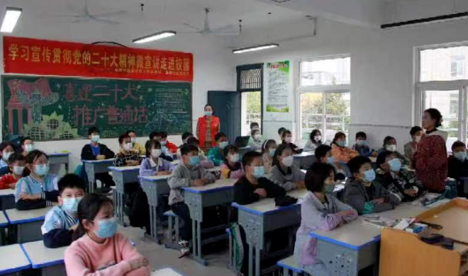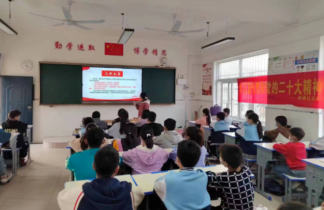 為幫助青少年深刻領(lǐng)悟紅色基因的時(shí)代內(nèi)涵和歷史使命,堅(jiān)定青少年永遠(yuǎn)跟黨走的紅色情懷,培養(yǎng)新時(shí)代接班人,2022年11月7日,由潁州區(qū)委宣傳部組織,潁州區(qū)“板凳”宣講團(tuán)走進(jìn)京九路街道田莊小學(xué)開(kāi)展“學(xué)習(xí)宣傳黨的二十大精神”宣講活動(dòng)。