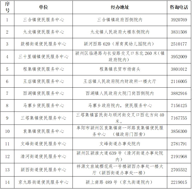 潁州區(qū)各鄉(xiāng)鎮(zhèn)(街道)醫(yī)保經(jīng)辦地址及咨詢電話