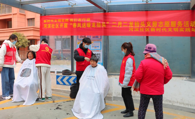 二月二龍?zhí)ь^,中國(guó)民間素有“二月二剃龍頭”的傳統(tǒng)習(xí)俗,有“理發(fā)去舊”的寓意。為解決轄區(qū)居民的“頭”等大事,進(jìn)一步弘揚(yáng)“奉獻(xiàn)、友愛、互助、進(jìn)步”的志愿服務(wù)精神,為社區(qū)居民提供更貼心、更便利的生活服務(wù)。2023年2月21日,文峰街道河濱社區(qū)新時(shí)代文明實(shí)踐站聯(lián)合金銀島物業(yè)公司開展“春風(fēng)送暖龍?zhí)ь^”二月二龍?zhí)ь^義剪志愿服務(wù)活動(dòng)。