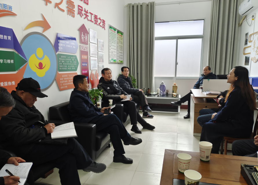 3月1日,阜陽市關工委到潁州區調研基層“五老調事”工作。市關工委主任王長安、常務副主任洪秀嶺、副主任楊超、法制組組長侯敬盤參加調研,區人大常委會主任呂登虎、關工委主任陳濤、常務副主任、秘書長李振川,常務副主任范龍等陪同調研。