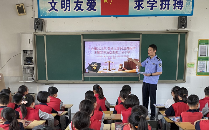 青少年是祖國的未來,學習法律知識是青少年走好人生道路、扣好每一粒“扣子”的基礎。為進一步增強青少年的法治意識,在校園營造“學法、知法、懂法、守法”的良好氛圍,5月23日上午,三合鎮新時代文明實踐所、司法所、婦聯、團委等部門聯合到三合鎮中心小學開展民法典進校園法律知識講座。