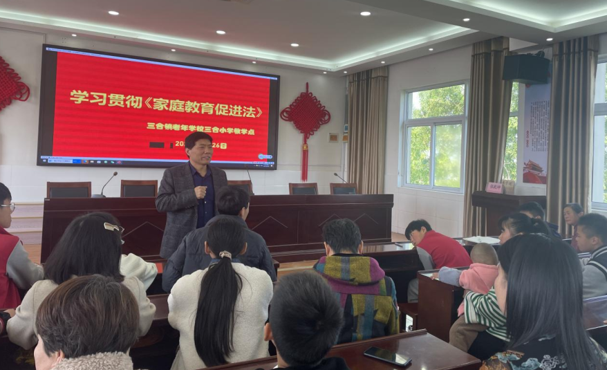 “家庭是人生的第一所學校,父母是孩子的第一任老師,做父母也是一門必修課程……”為深入貫徹落實國家有關家庭教育的政策和法律法規,提高教師和家長對家庭教育的認識和理解,進一步推動學校家庭教育工作的發展,5月22日上午,三合鎮關工委、中心校在三合中學開展了《家庭教育促進法》主題宣講活動。