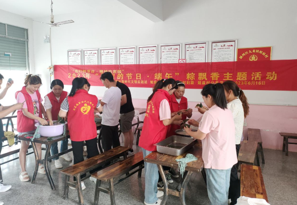 端午近,粽香飄。在中華民族傳統(tǒng)節(jié)日端午節(jié)到來之際,為弘揚中華民族優(yōu)秀傳統(tǒng)文化,營造良好的傳統(tǒng)節(jié)日氛圍,6月16日,九龍鎮(zhèn)姬廟村新時代文明實踐站開展2023年“我們的節(jié)日·端午”粽飄香主題活動。