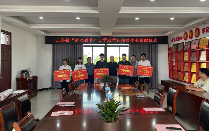 金秋碩果豐,助學情意暖。為持續弘揚中華民族扶危濟困的傳統美德,幫助品學兼優、家庭困難的新考入大學的學子順利入學,8月31日下午,三合鎮團委“愛心圓夢”大學助學行動助學金捐助儀式在三合鎮政府舉行,三合鎮黨委副書記劉輝主持儀式,三合鎮愛心企業鑫豪景家具有限公司、金號角商貿有限公司、鴻鑫家具廠企業負責人及受捐助大學生、各級團組織負責人參加會議。