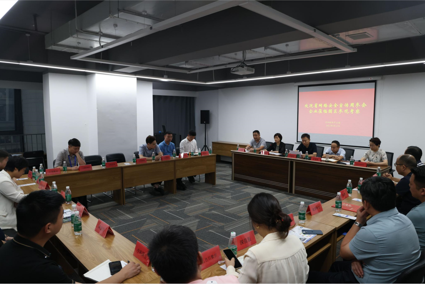 笪前進對各企業積極來阜參與全省網絡安全宣傳周活動表示贊許和感謝,表示阜陽軟件產業園是市委市政府、區委區政府貫徹落實省實施工業轉型發展、推進“雙招雙引”政策的重大舉措。阜陽市應用場景潛力大、需求廣,園區目前入駐企業發展勢頭良好,歡迎各企業多了解多交流,加強合作。近期區委區政府正在從三個方面加強園區發展,更好為入駐企業服務。一是修訂完善園區發展支持政策,構建軟件和信息技術服務業全生態鏈條體系。二是制定出臺“兩個清單”。進行廣泛市場調研,認真摸排園區企業優勢、服務類型和我市應用端需求,制定出當前和今后一個時期的服務類型和應用需求清單,為市場和企業搭建快速便捷的對接平臺。三是推動實行“揭榜掛帥”。積極推動園區政產學研基地建設,實施“滿天星計劃”,為入駐企業的優秀人才提供創業資金扶持,運用市場邏輯和市場手段,合法合規落實本地研發本地生產全國推廣應用目標。