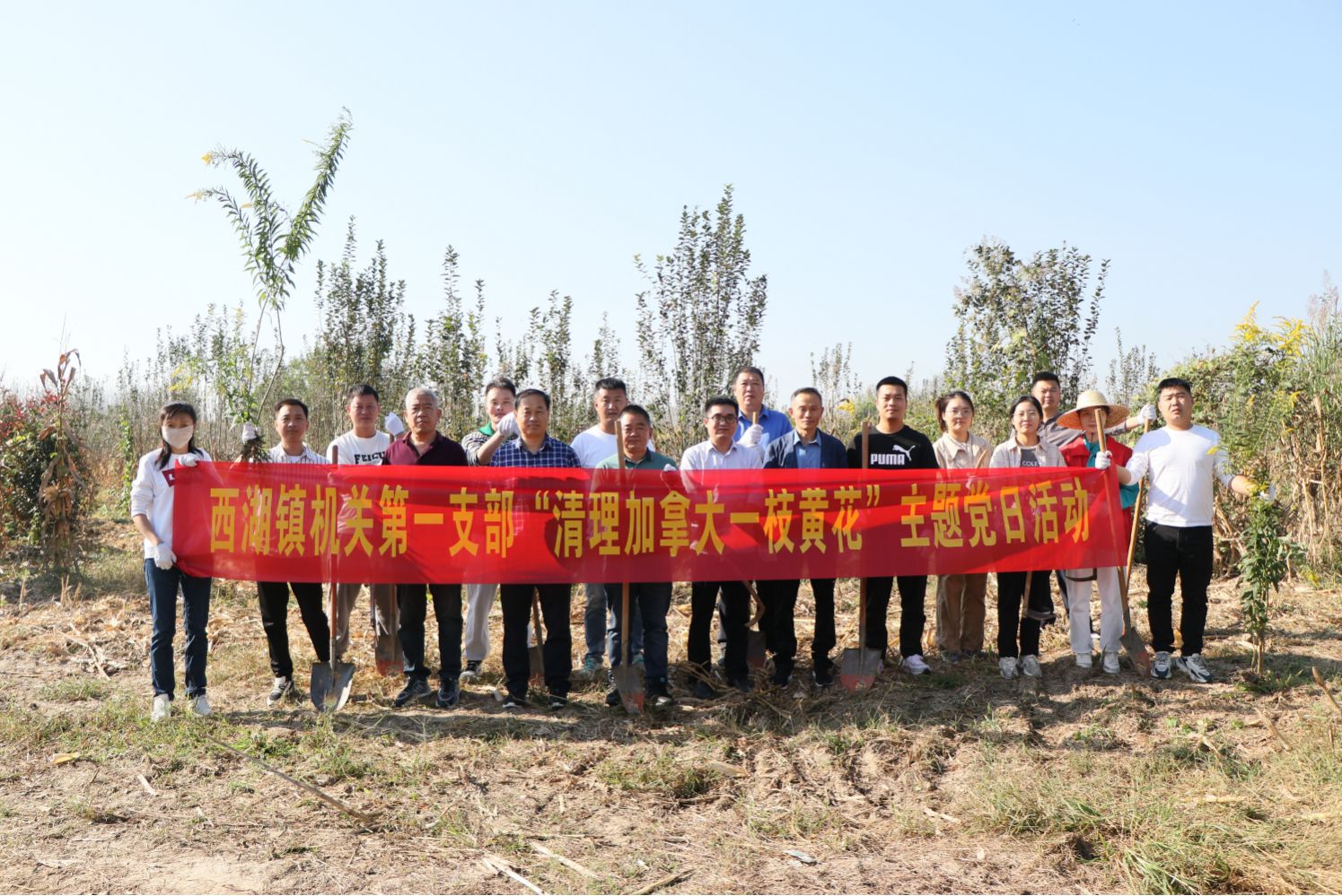為廣泛宣傳并清除外來入侵植物加拿大一枝黃花,10月17日上午,西湖鎮機關第一支部組織開展“清理加拿大一枝黃花”主題黨日活動。