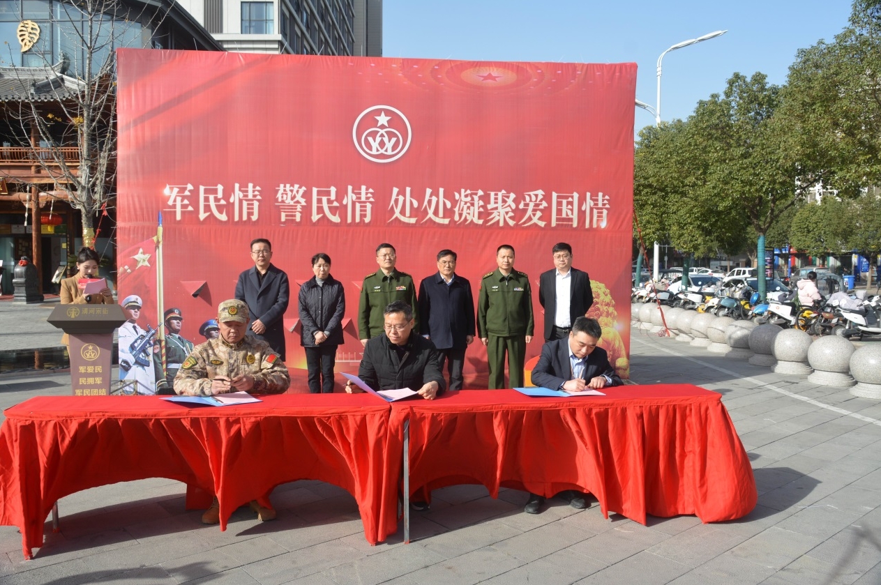 活動現場,區退役軍人事務局、鼓樓街道人武部、清河宋街商管公司相關負責人共同簽署雙擁合作協議;市、區領導對雙擁文化一條街進行揭牌。