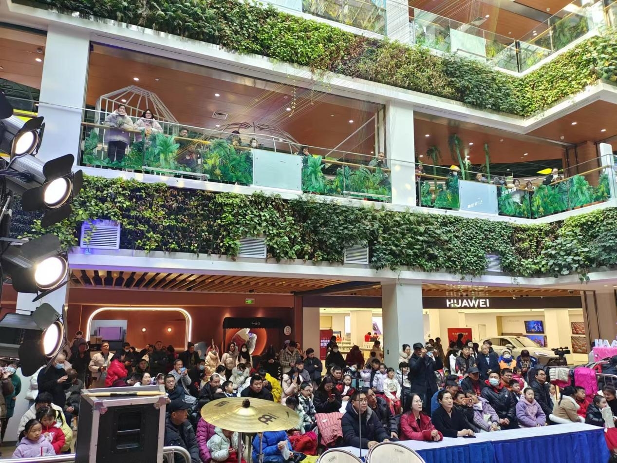 音樂會現(xiàn)場,歡快躍動的中外經(jīng)典音樂,引得周末休閑購物的市民紛紛駐足欣賞,舉起手機拍攝照片或短視頻,將這道獨特的文藝風(fēng)景線分享給親朋好友。以往開闊的中庭空間瞬間變成了高雅的音樂海洋。