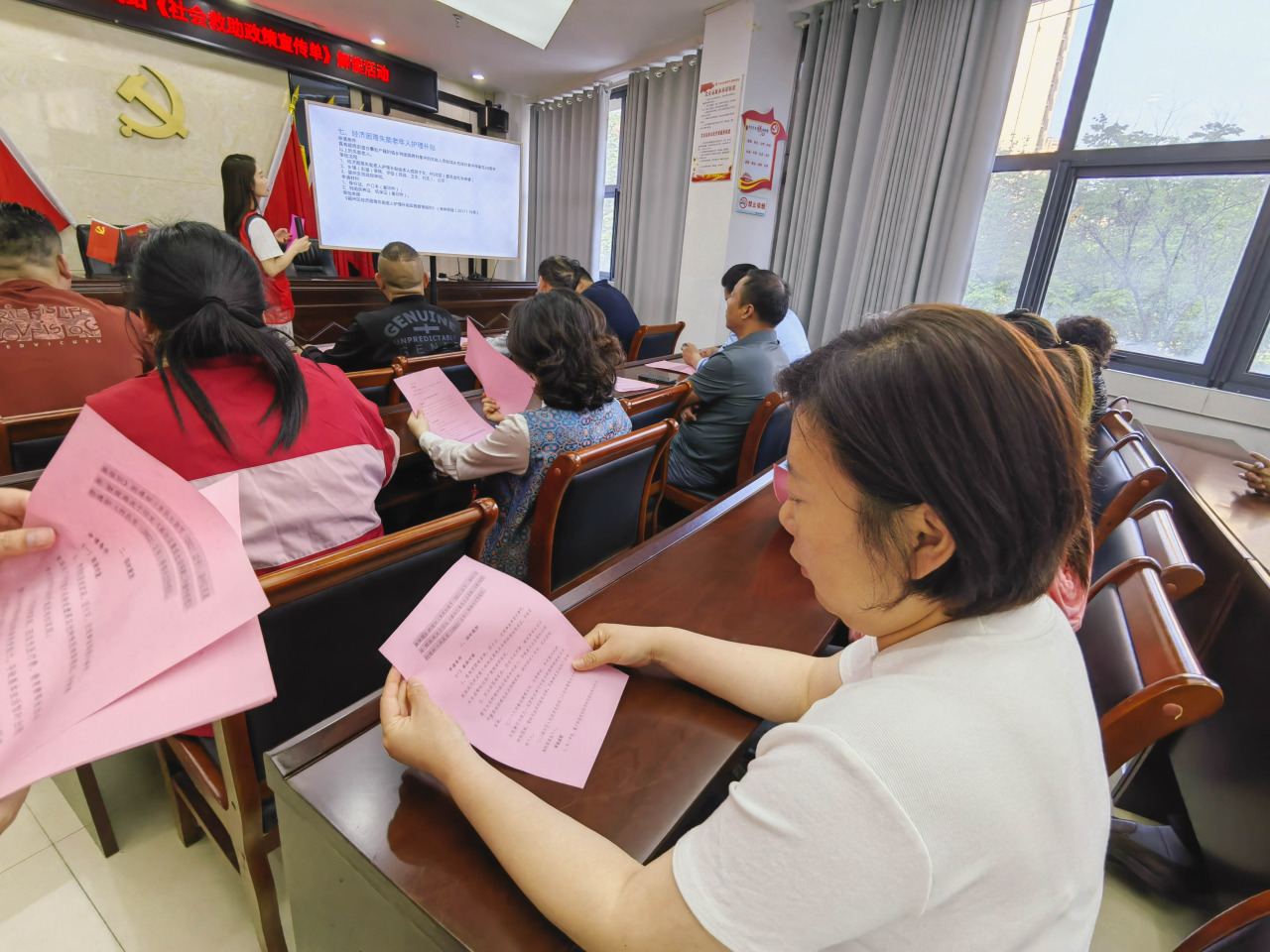 活動中,志愿者們通過現場講解、答疑、PPT展示以及發放社會救助政策宣傳單等形式,詳細介紹了社會救助的范圍及要求,宣傳低保、特困等救助申請流程及補助措施。