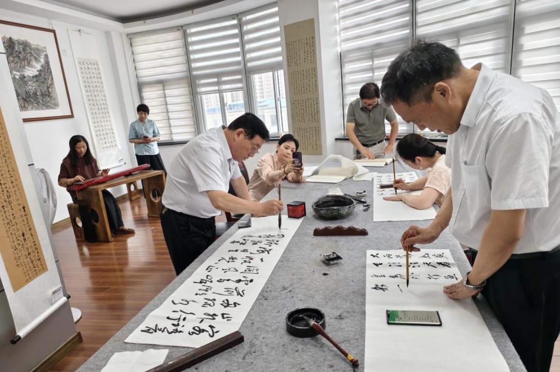 活動(dòng)中書(shū)畫(huà)家們一起聆聽(tīng)古琴?gòu)棾冻礁杞o黨聽(tīng)》。大家懷著無(wú)比崇敬的心情靜靜的聆聽(tīng),回顧黨的光輝歷程,緬懷先烈的豐功偉績(jī),銘記黨的初心和使命。隨后書(shū)畫(huà)家們揮毫潑墨,以書(shū)言志、以畫(huà)傳情,用丹青妙筆抒寫(xiě)時(shí)代風(fēng)貌,以傳統(tǒng)的書(shū)畫(huà)形式禮贊偉大建黨精神,表達(dá)對(duì)黨和祖國(guó)的感恩之情,為黨的生日隆重獻(xiàn)禮。