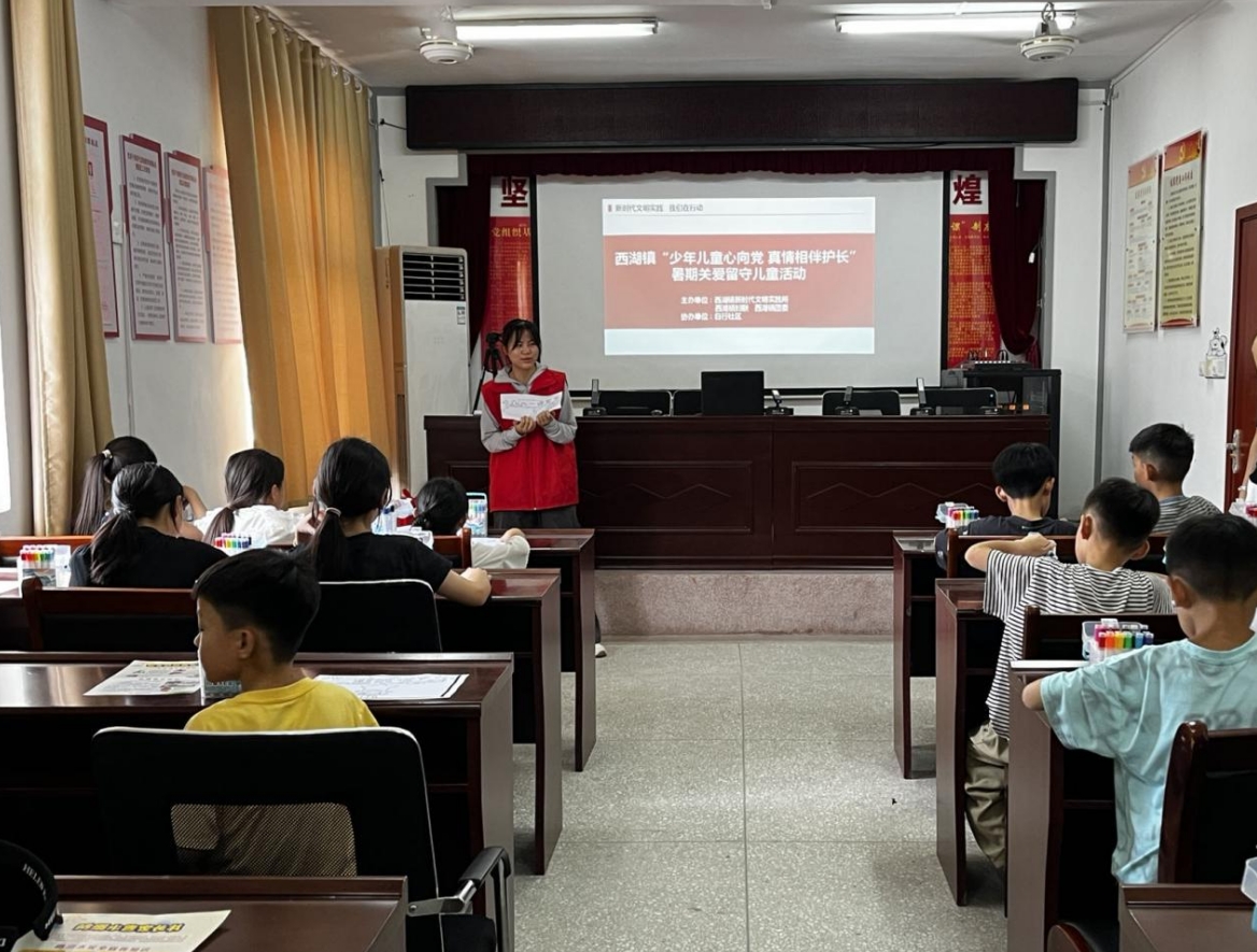 為進一步做好留守兒童關心愛護工作,促進留守兒童身心健康發展,豐富他們的暑期生活,8月2日上午,西湖鎮團委聯合鎮婦聯、新時代文明實踐所開展“少年兒童心向黨 真情相伴護成長”暑期關愛留守兒童活動。