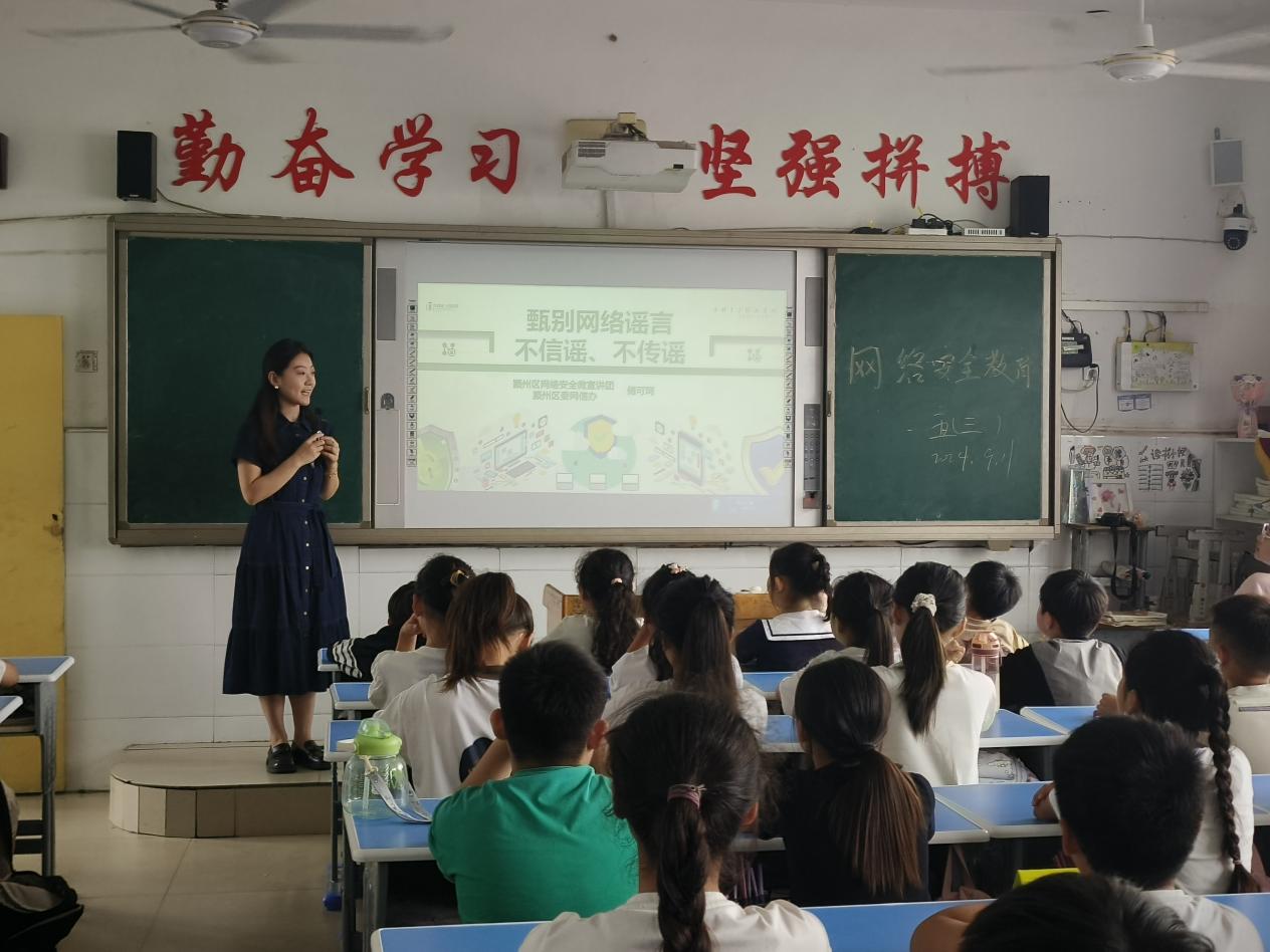 活動現場,宣講員從如何分辨網絡謠言和未成年人如何正確上網兩個方面為同學們作了生動的講解,并通過播放網絡安全視頻動畫的形式,幫助同學們認識生活中的不良網絡現象。學生們積極參與互動問答,不僅加深了對網絡安全知識的理解,還激發了他們對網絡安全問題的思考。
