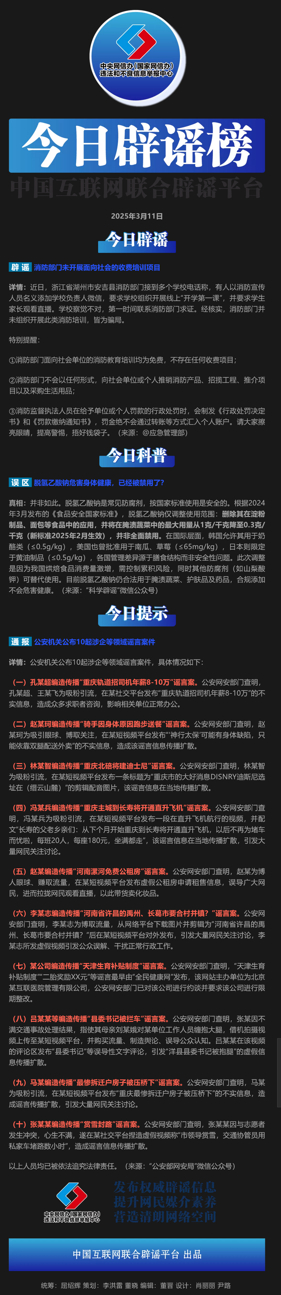 今日辟謠(2025年3月11日)