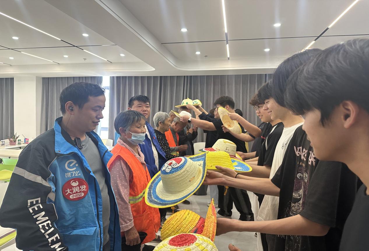 繪畫完成后,參與者們帶著親手繪制的草帽,將這份飽含心意的禮物送給身邊的勞動者。收到草帽的快遞員李師傅開心地說:“這頂草帽不僅實用,還充滿了大家的心意,讓我感受到了被尊重、被關愛的溫暖,我會繼續努力工作!”