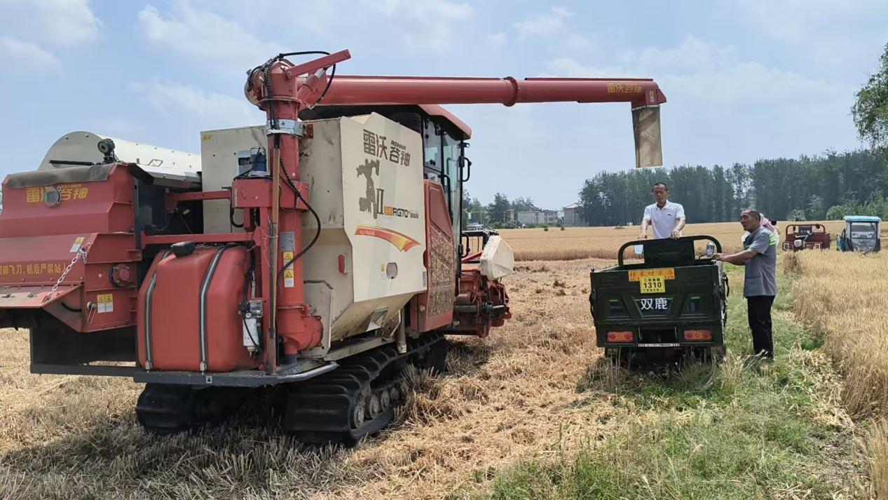 春爭日,夏爭時。在潁州區三塔集鎮的土地上,一臺臺聯合收割機正來回穿梭。收割、脫粒……農機駛過,小麥入倉。隨后收集運輸、送麥到家“一條龍”作業,大大縮短了農時。
