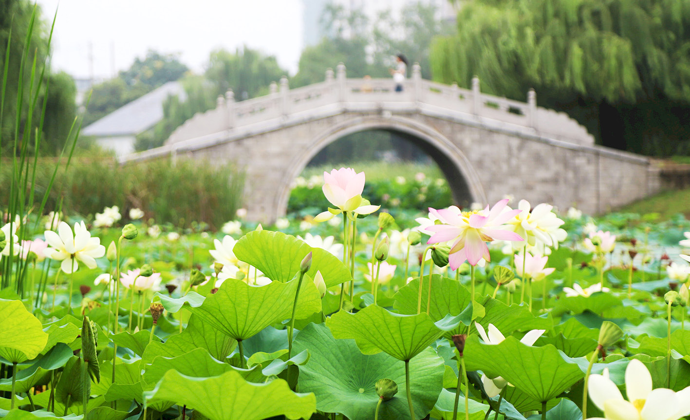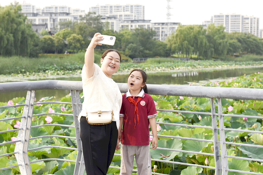 暑至荷開,潁州區文峰公園、雙清灣公園、七漁河公園等多個公園、游園荷花盛放,姿態各異的花朵為夏日增添了一抹亮色和詩意。