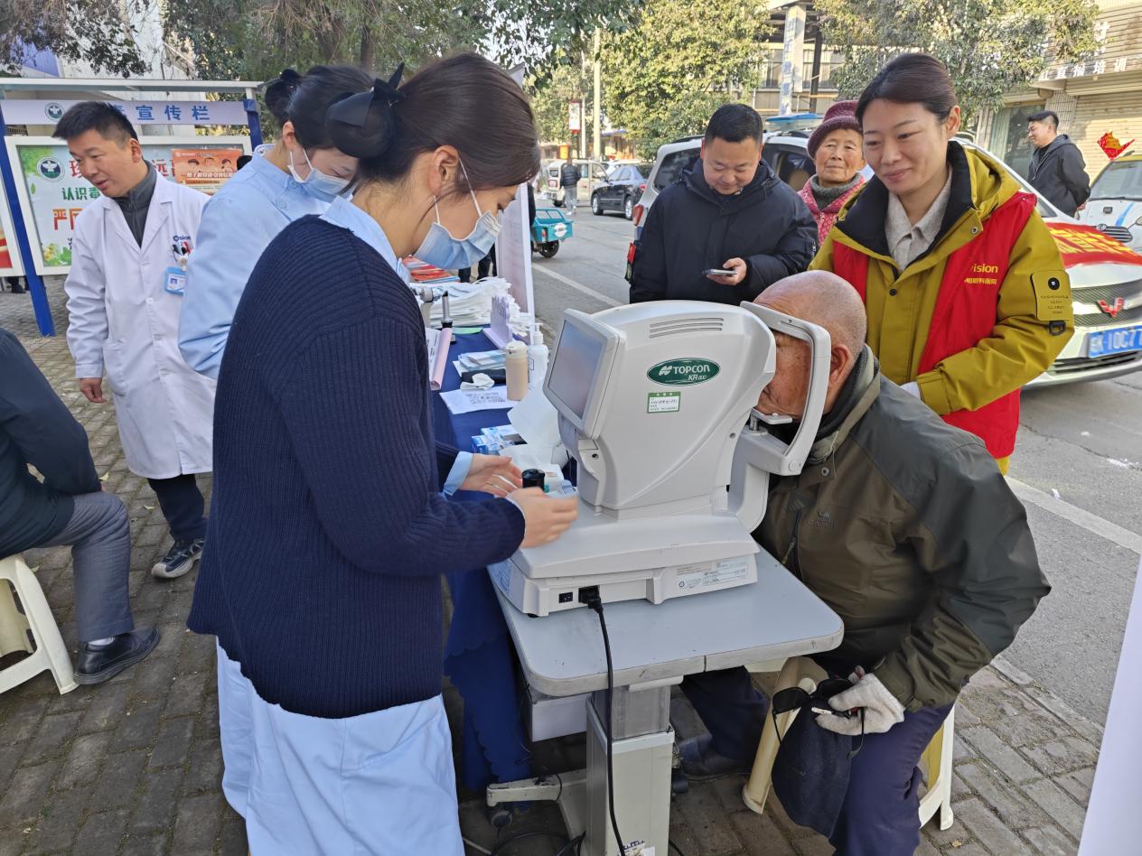 活動現場,醫療團隊為轄區退役軍人及老年群眾提供視力檢測、常見眼病篩查、眼壓測量等免費服務。醫護人員耐心細致地查看眼部狀況,針對白內障、老花眼等高發問題給出專業診療建議,同時普及日常護眼知識和用眼衛生常識。對行動不便的老人,志愿者全程陪同引導,讓便民服務更有溫度。